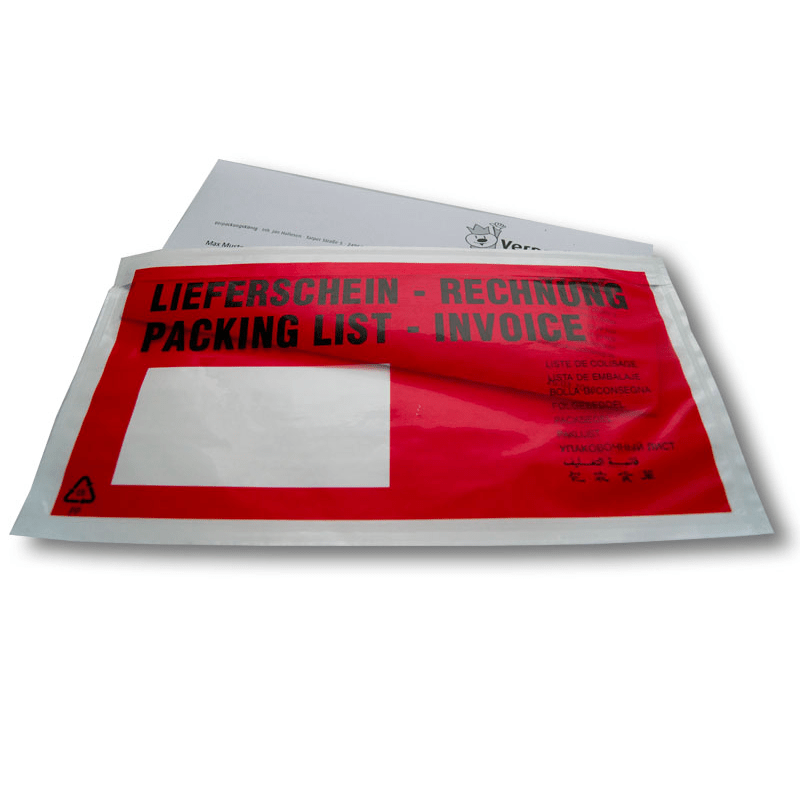 LIEFERSCHEINTASCHE DIN LANG 235 X 132 MM ROT MIT DRUCK VPE:1000 ST.