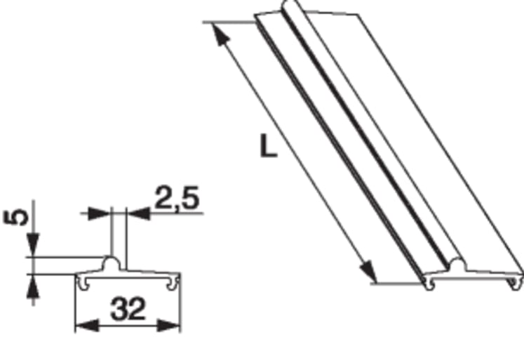 Laufschiene HS-ST flach in Alu Versatz 2,5 Nut 30x5 H=5mm L=6.500mm silber