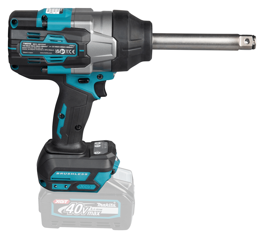 XGT Schlagschrauber mit 138 mm Langschaft 3/4"-Außenvierkantantrieb für effizientes Arbeiten.Ein bürstenloser 3/4"-Schlagschrauber mit vier Vorwärtsmodi, zwei Rückwärtsmodi, Auto-Stopp-Modus und einer