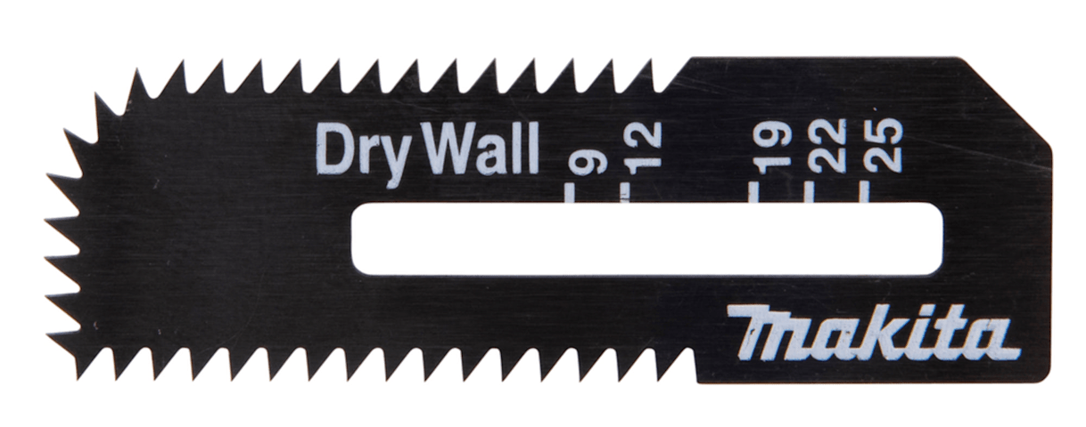 Trockenbausägeblatt für Akku-Trockenbausäge mit Skala für eine millimetergenaue EintauchtiefeDie Trockenbausägeblätter sind für Ausschnitte in Gipskarton und passen auf die Makita Akku-Trockenbausägen