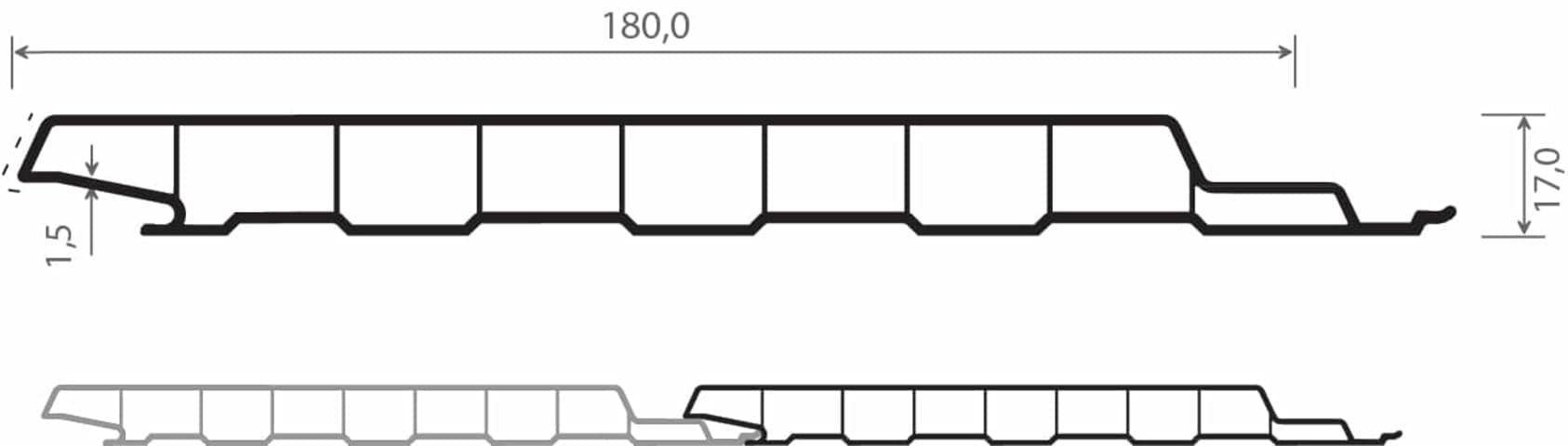 Nut- u. Federprofil 180x17 mm Lg. 6,00 m foliert 446 4062 JET BLACK STYLO [144]