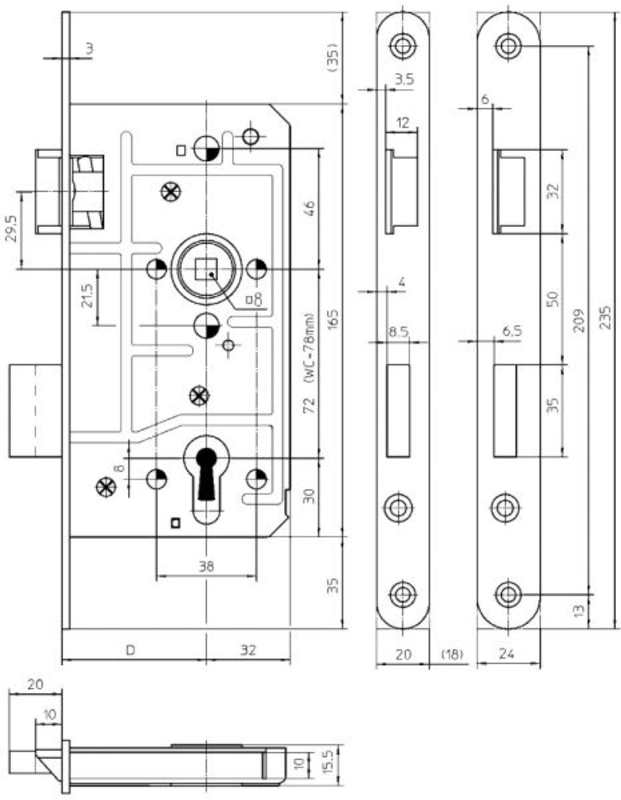 80-RS-20-KTG. NIROSTA MATT GEB. OHNE SCHLIESSBL. FALLE RIEGEL GLANZ VERNICK. OHNE GRAPHITNIPPEL