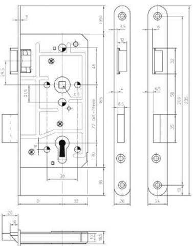 Objekt-Einsteckschloss Klasse 3 + 4 63-PZW/80-R-24-A-41