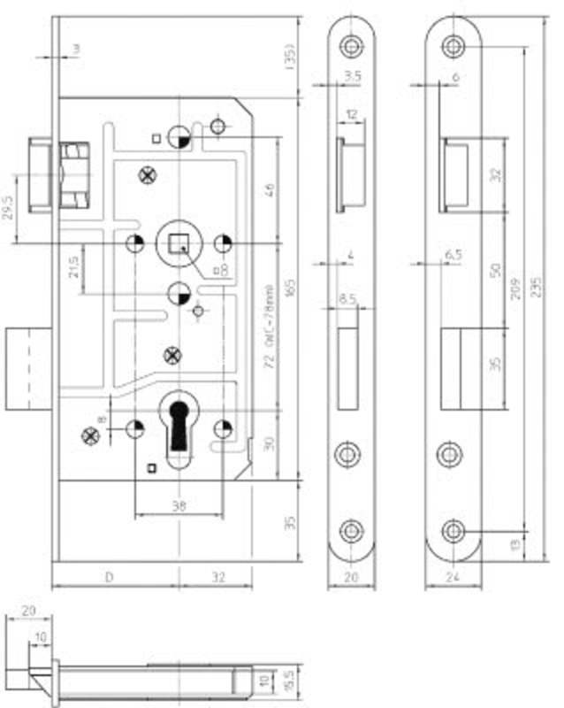 Objekt-Einsteckschloss Klasse 3 + 4 63-1/2-PZW/60-R-20-A-41