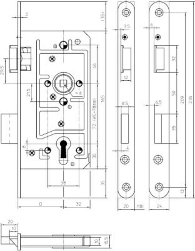 Objekt-Einsteckschloss Klasse 3 + 4 65-1/2-PZW/55-L-20-A-41