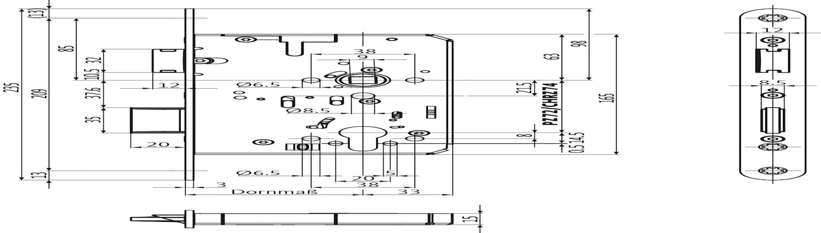 BKS feuerhemmend Panik-Einsteckschloss, Lochung: Rundzylinder gelocht, Dornmaß: 100 mm, Entfernung: 74 mm, Entfernung: 74, Drückernussvierkant: 9, Drückernussvierkant: 9 mm, Stulpbreite: 20 mm, Stulpausführung: rund, Stulpstärke: 3 mm, Stulpform: Flachstulp, Stulpeigenschaft: beidseitig überstehend, Modellnummer: B-2326, Wechsel: mit Wechsel, DIN-Richtung: DIN Rechts, Einzelteilmaterial Stulp: edelstahl, Farbton Stulp: Edelstahl, Oberfläche Stulp: matt, Türausprägung: Türe gefälzt, Schlossriegel: 2 tourig, Funktion Anti Panik: Wechselfunktion E, Anschlagrichtung: Rechts Auswärts, Funktion: Panikfunktion, Türart: Feuerschutztür, Rauchschutztür, Paniktür, Fluchtwegtür, Türflügelanzahl: einflügelig, Einzelteilmaterial Falle: stahl, Fallenausschluss: 12 mm, Falleneigenschaft: mit Standardfalle, Einzelteilmaterial Riegel: Zinkdruckguss, Riegeleigenschaft: Standard, Riegelausschluss: 20 mm, Drückernuss: einteilig, Einzelteilmaterial Drückernuss: stahl, Schlosskasten: geschlossen, Einzelteilmaterial Schlosskasten: stahl, Oberfläche Schlosskasten: verzinkt, Schlosskastenlänge: 165 mm, Schlosskastenbreite: 130 mm, Schlosskastenstärke: 15 mm, Norm: DIN 18250, DIN EN 179, DIN EN 1125, DIN EN 1125, DIN EN 179, Türwerkstoff: Holz, stahl