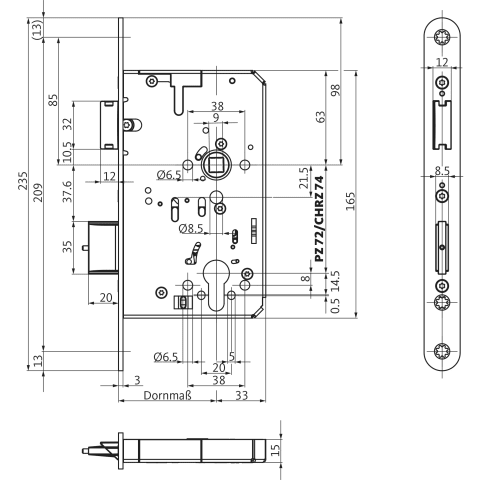 BKS PA-Einsteckschloss B-23270,PZW72/9,D55,F24x235rd,ER,PAF-E ausw.,GFF