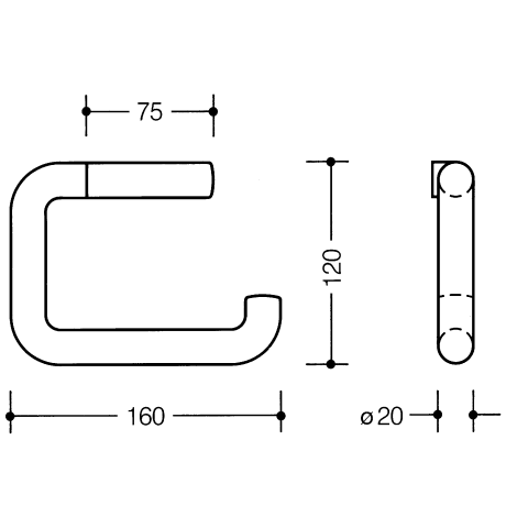 • 160 mm breit, 120 mm hoch, Stange 20 mm im Durchmesser