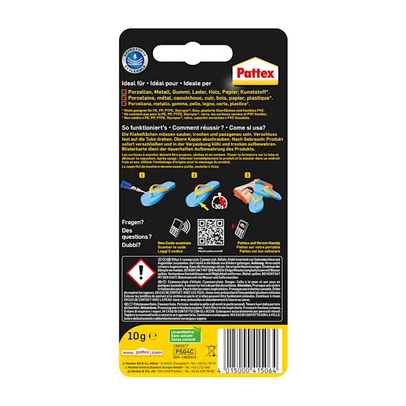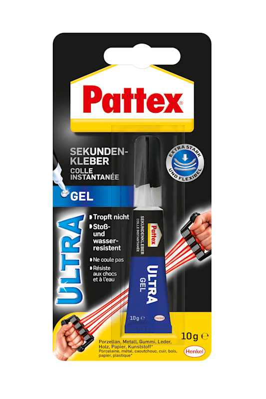 Für extra starke und gleichzeitig flexible Sofortreparaturen im Haushalt und der Werkstatt ist der Pattex Ultra Gel Sekundenkleber genau richtig. Mit seiner patentierten Henkel Rezeptur mit Cyanacryla