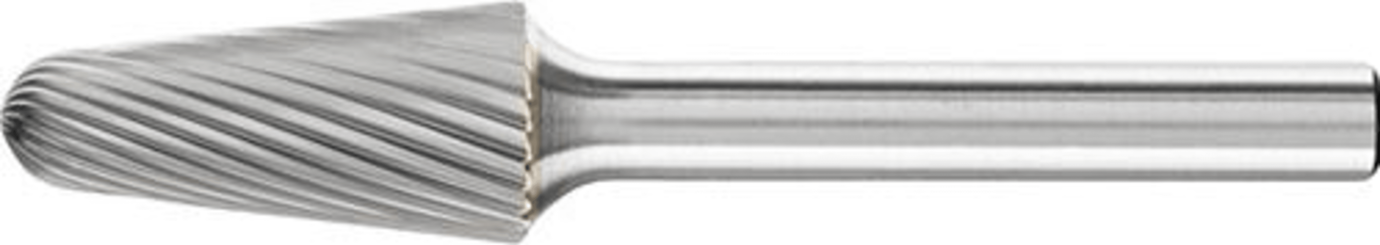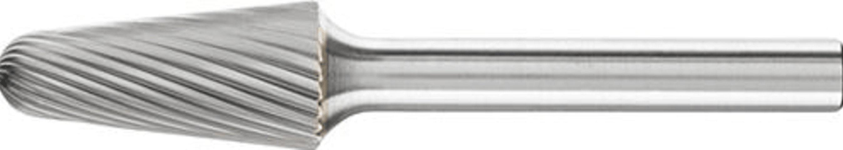 HM-Frässtift KEL, Rundkegelform, Zahnung 3• Hoher Materialabtrag • Gute Oberfläche • Für die Bearbeitung von Stahl, Guss, Leicht- und NE-Metallen