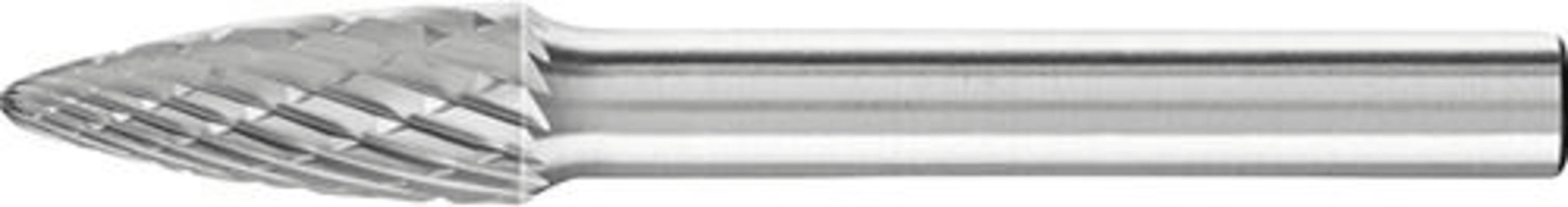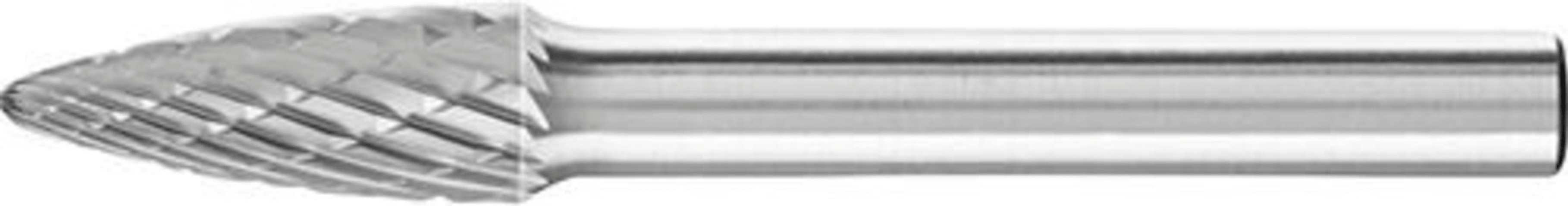 HM-Frässtift RBF, Rundbogenform, Zahnung 3 PLUS• Gute Oberfläche • Für die Bearbeitung von Stahl < 60 HRC, Edelstahl (INOX), Gusseisen und hochwarmfesten Werkstoffen wie Nickelbasis- und Kobaltbasis