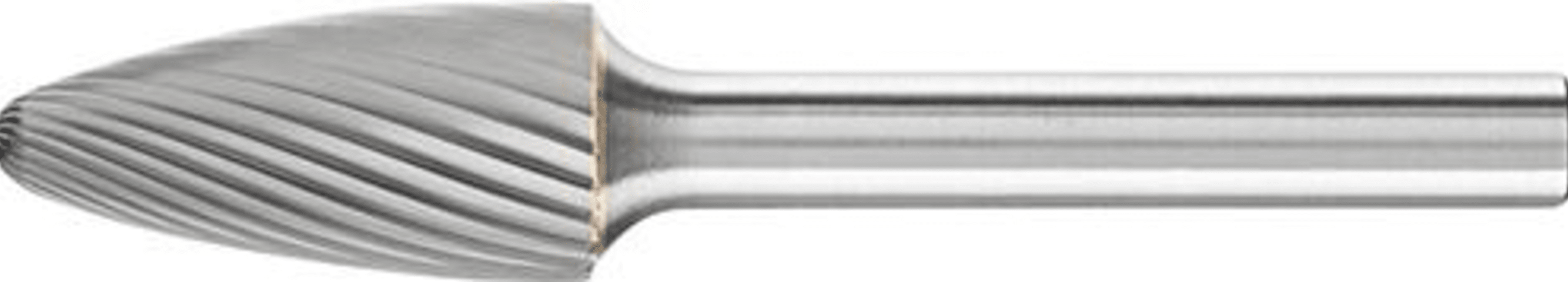 HM-Frässtift RBF, Rundbogenform, Zahnung 3• Hoher Materialabtrag • Gute Oberfläche • Für die Bearbeitung von Stahl, Guss, Leicht- und NE-Metallen
