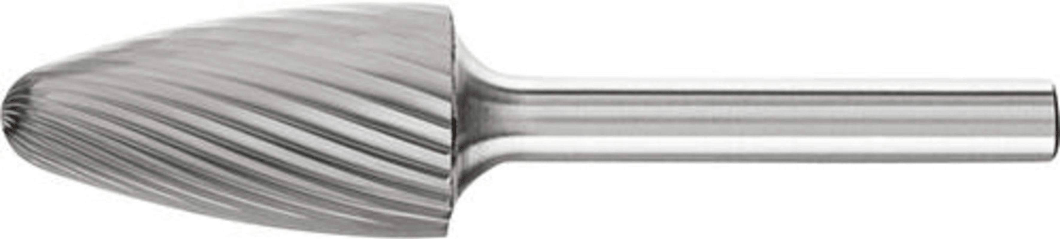 HM-Frässtift RBF, Rundbogenform, Zahnung 3• Hoher Materialabtrag • Gute Oberfläche • Für die Bearbeitung von Stahl, Guss, Leicht- und NE-Metallen
