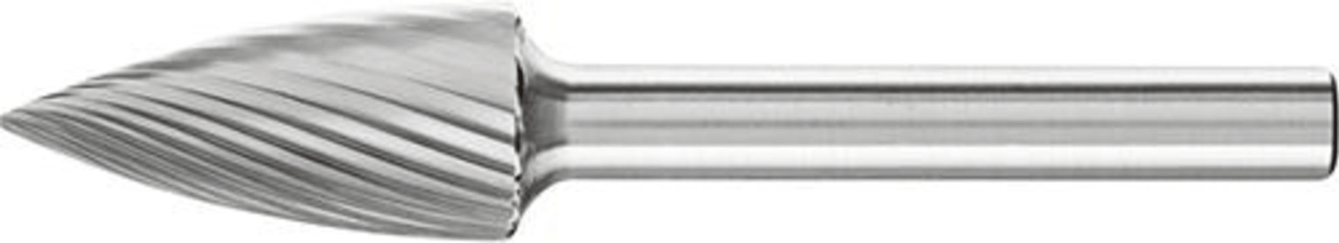 HM-Frässtift SPG, Spitzbogenform, Zahnung 3• Hoher Materialabtrag • Gute Oberfläche • Für die Bearbeitung von Stahl, Guss, Leicht- und NE-Metallen