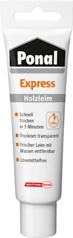 Mit dem Ponal Express Holzleim lassen sich vielfältige Verleimungen einfach umsetzen. Bei Montage-, Fugen-, Flächen-, Zargen- und Korpusverleimungen überzeugt der lösemittelfreie und transparent trock
