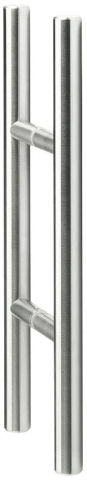 Premium Stoßgriffpaar Serie "MILANO" 8500 Ø 20 mm, Länge 300 mm, Achsmaß 200 mm, 2 gerade Stützen 18 Ø mit transp. U-Scheibe, inkl. paarw. Befestigung für Tst. 8 - 55 mm, Oberfl. 60 (Edelstahl matt)