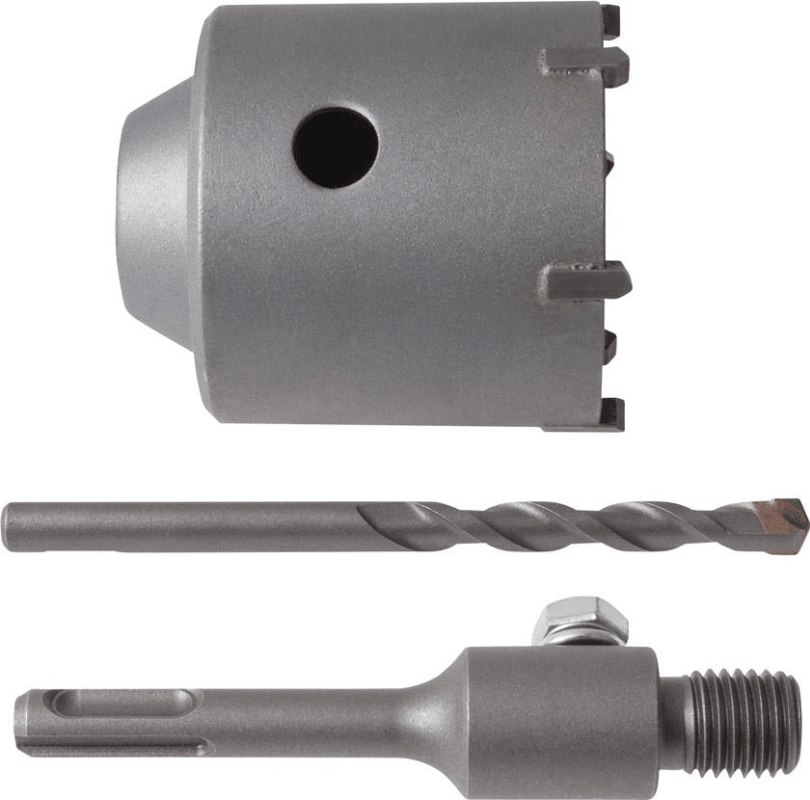 Lieferung: Schlagbohrkrone mit SDS-plus-Aufnahmeschaft und Zentrierbohrer.
