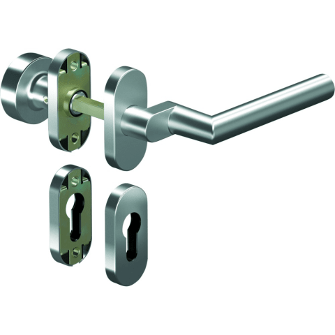 OGRO Wechselgarnitur Premium 8906A/6620; Produkttyp: Wechselgarnitur; Produkttyp (Hersteller): Wechselgarnitur; Ausführung: Rosette; Befestigungsart Drückerrosette (außen): verdeckt verschraubt; Befestigungsart Drückerrosette (innen): verdeckt verschraubt; Befestigungsart Schlüsselrosette (außen): verdeckt verschraubt; Befestigungsart Schlüsselrosette (innen): verdeckt verschraubt; Befestigungstechnik: ohne Stütznocken; Form Drückerrosette: oval; Form Schlüsselrosette (außen): oval; Form Schlüsselrosette (innen): oval; Vierkant: 8 mm; Material: Aluminium; Form Türgriff (innen): versetzt,U-Form,Gehrung; Form Türgriff (außen): rund; Ausführung Türgriff (außen): fest; Durchmesser Türgriff (innen): 20 mm; Länge Türgriff (innen): 169 mm; Höhe Türgriff (innen): 67 mm; Höhe Türgriff (außen): 42 mm; Breite Drückerrosette (außen): 31,5 mm; Breite Drückerrosette (innen): 31,5 mm; Länge Drückerrosette (außen): 68,5 mm; Länge Drückerrosette (innen): 68,5 mm; Höhe Drückerrosette (außen): 9 mm; Höhe Drückerrosette (innen): 9 mm; Breite Schlüsselrosette (außen): 31,5 mm; Breite Schlüsselrosette (innen): 31,5 mm; Länge Schlüsselrosette (außen): 68,5 mm; Länge Schlüsselrosette (innen): 68,5 mm; Höhe Schlüsselrosette (außen): 9 mm; Höhe Schlüsselrosette (innen): 9 mm; Lagerung: wartungsfreies Gleitlager,festdrehbar; Einsatzbereich: Haustür,Objekttür; Türart: Rohrrahmen; Türwerkstoff: Aluminium,Kunststoff; Anwendung: außen/innen; Lochung: Profilzylinder gelocht; DIN-Richtung: DIN Links-Rechts; Farbe: silber; Farbton: naturfarben; Oberfläche: satino; Ausführung Vierkant: Rollenwechselstift; Türstärke min.: 35 mm; Türstärke max.: 48 mm; Norm: DIN EN 1906
