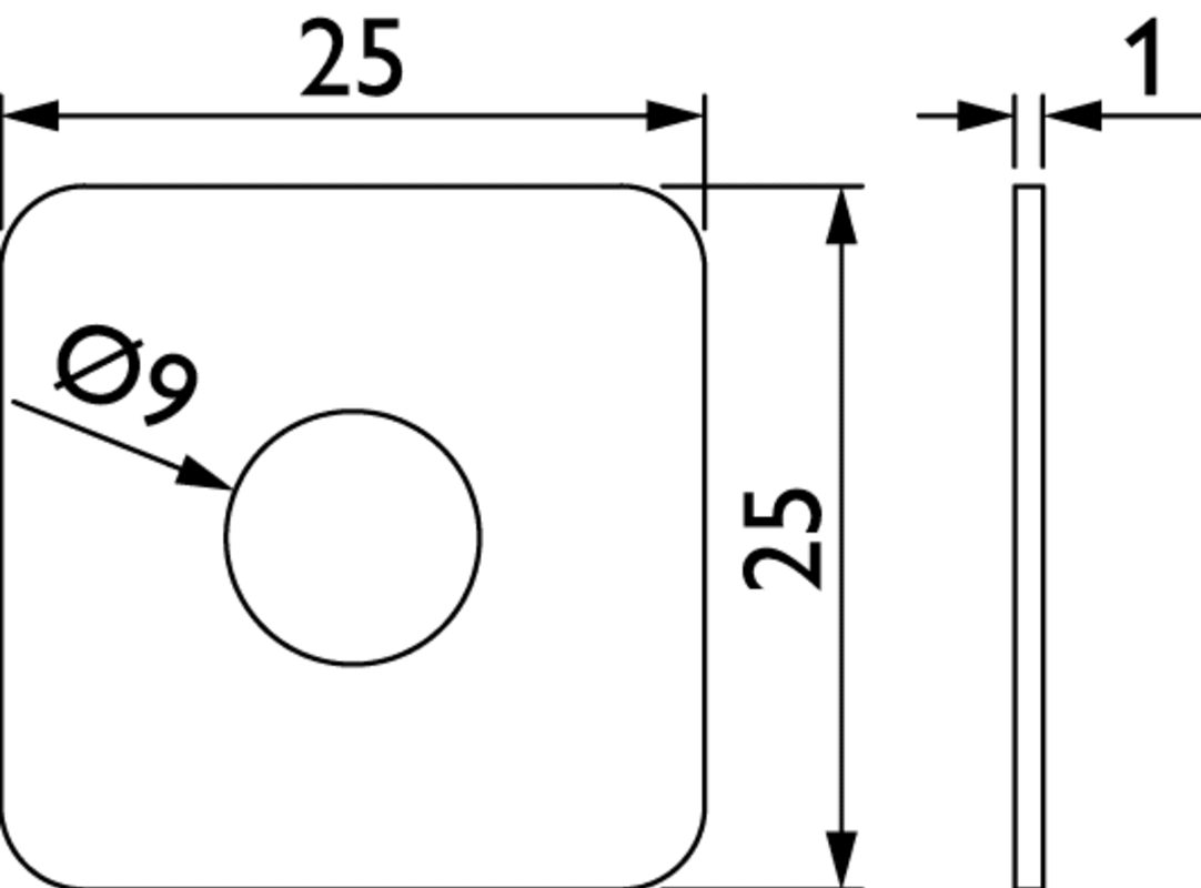 PVC - U-Scheibe transparent 25 x 25 mm, für gerade kantige Stoßgriffstütze, 1 mm stark, mit Lochung 9 mm, Transparent