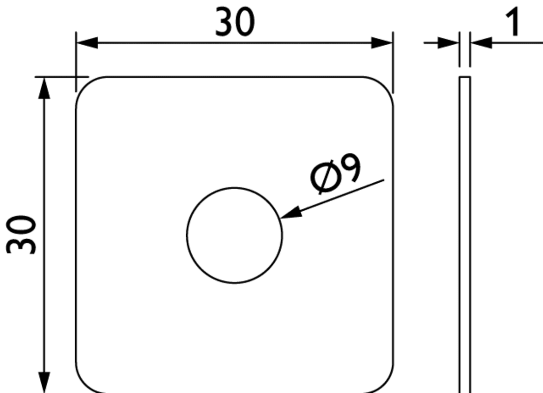 PVC - U-Scheibe transparent 30 x 30 mm, für gerade kantige Stoßgriffstütze, 1 mm stark, mit Lochung 9 mm, Transparent