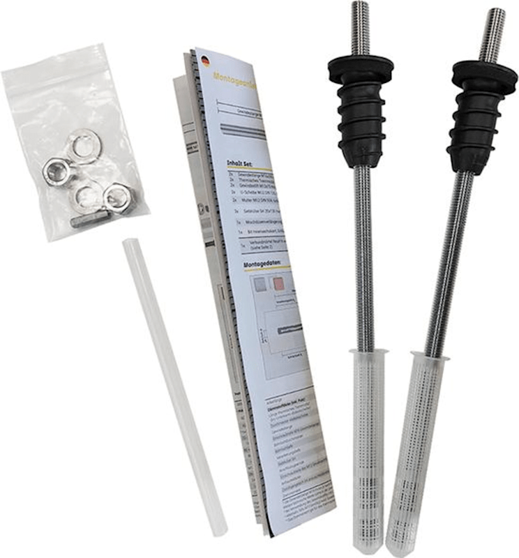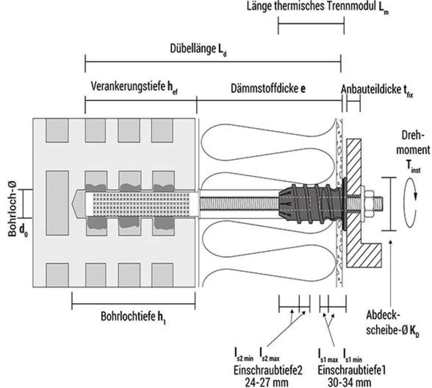 • Hohe Anwendungsflexibilität: Ein Set für alle Dämmstoffarten und -dicken von 60–300 mm in Beton und 60–250 mm in Lochsteinen (ResiTHERM® 16), von 60–220 mm in Beton und 60–160 mm in Lochsteinen (ResiTHERM® 12