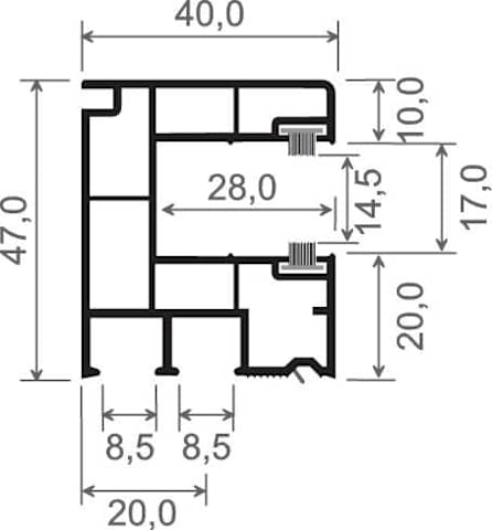 Rollladenführung 40x47 mm Lg. 6,50 m foliert, mit zwei schwarzen Bürsten GK Braun 8007-02201 HONEY OAK SUPER MATT [151]