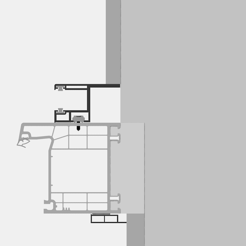 Rollladenführung 55x32 mm Lg. 6,00 m foliert, mit Nase, mit zwei schwarzen Bürsten GK Grau 7102.95 TROMPET GLATT [67]