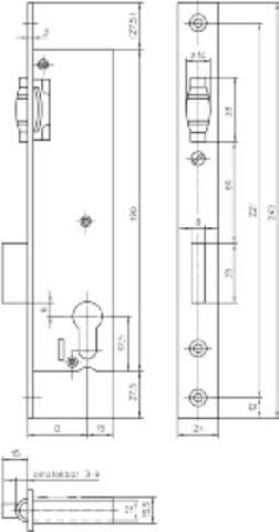 Rohrrahmen-Einsteckschloss 88-PZ/40-24-K-41-B