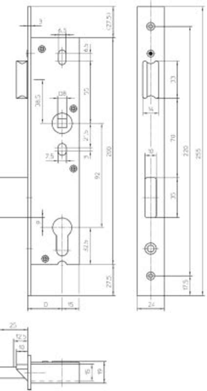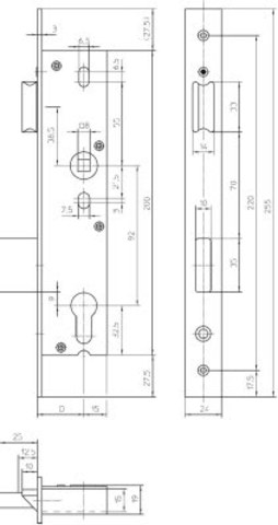 Rohrrahmen-Einsteckschloss 29-PZW/25-24-K-41-B