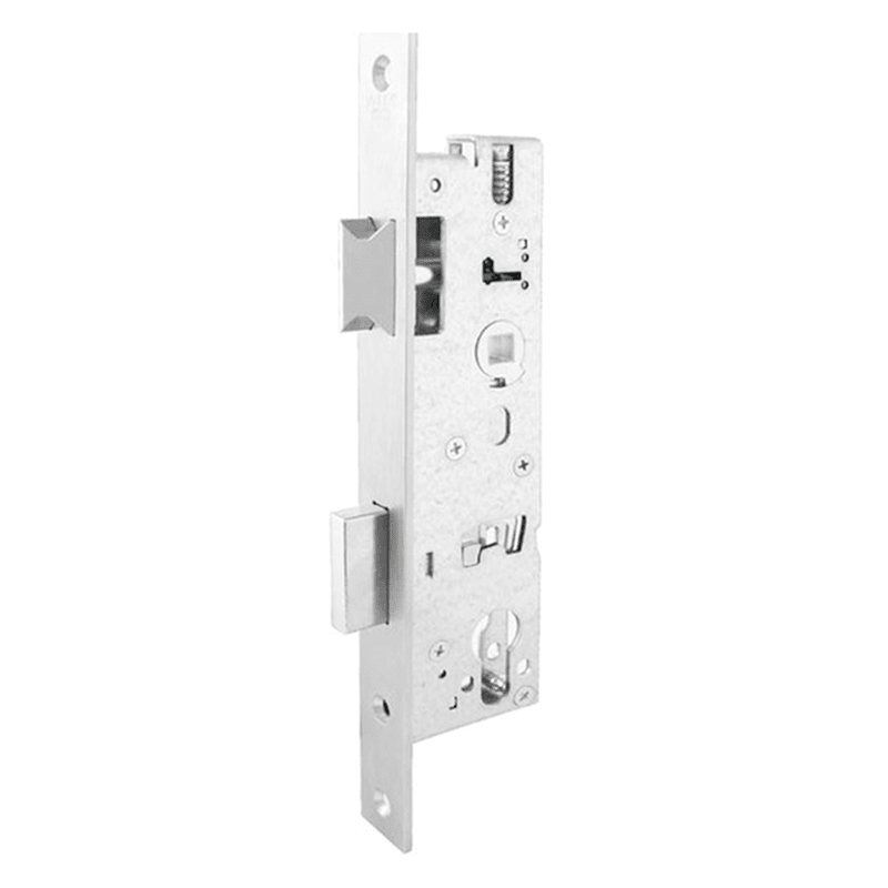 Rohrrahmenschloss 1433 • für Rohrrahmentüren • für Profilzylinder vorgerichtet • komplett verzinkt • Nuss einteilig mit Wechsel • Falle umlegbar • 1-tourig = 15 mm Riegelausschluss • Schlosskasten ob