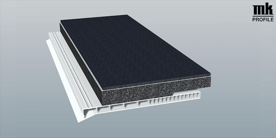 Rollladenkastendeckel 160 mm Lg. 6,00 m Weiß, mit 20 mm Flex-Schaum 25 mm versetzt von vorne, mit Schwerfolie VE: 18 m