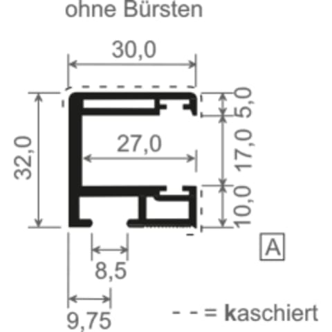 Rollladenführung 55x32 mm Lg. 6,00 m foliert, mit Nase, mit zwei schwarzen Bürsten GK Braun 51 5005-167 STAHLBLAU [45]