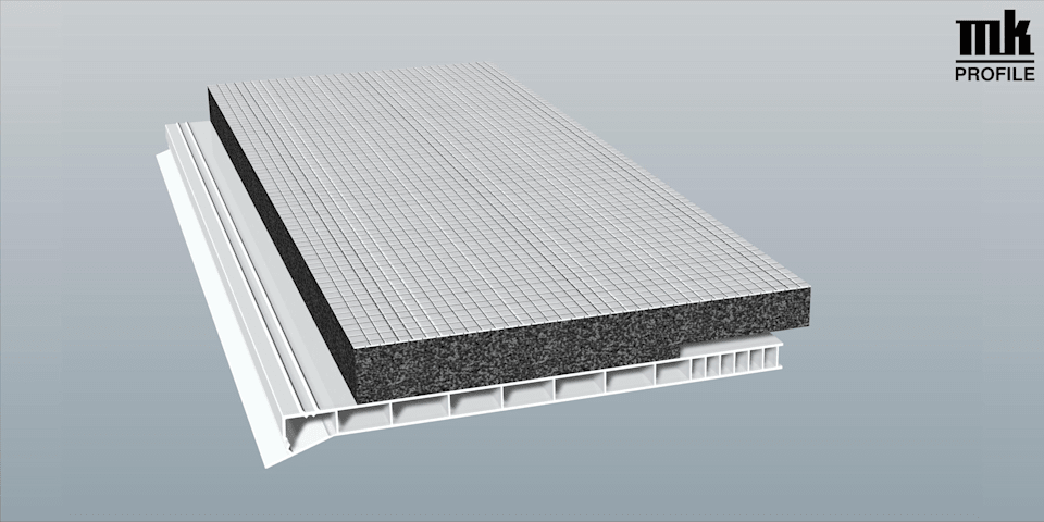 Rollladenkastendeckel 180 mm Lg. 6,00 m Weiß, mit 20 mm Flex-Schaum 25 mm versetzt von vorne VE: 18 m