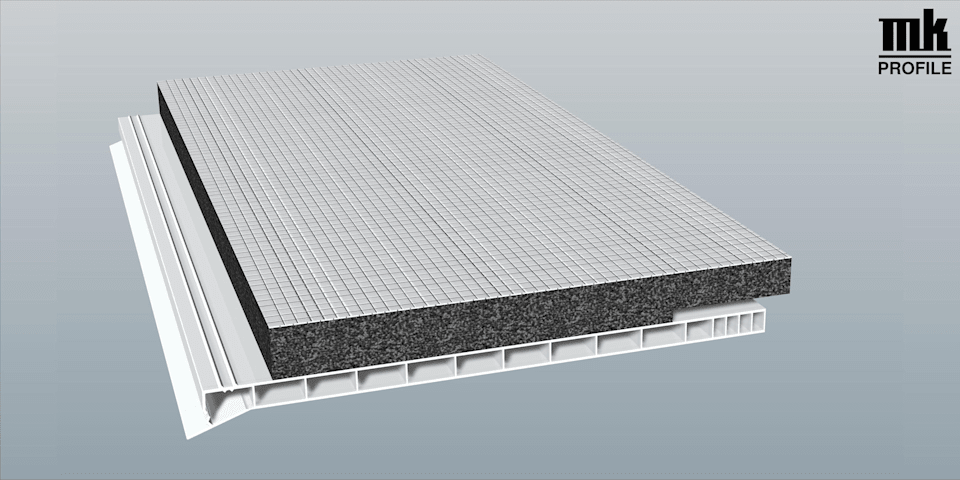 Rollladenkastendeckel 220 mm Lg. 6,00 m Weiß, mit 20 mm Flex-Schaum 25 mm versetzt von vorne VE: 18 m