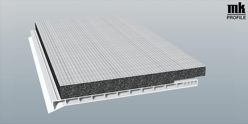 Rollladenkastendeckel 220 mm Lg. 6,00 m Weiß, mit 20 mm Flex-Schaum 12 mm versetzt von vorne VE: 18 m
