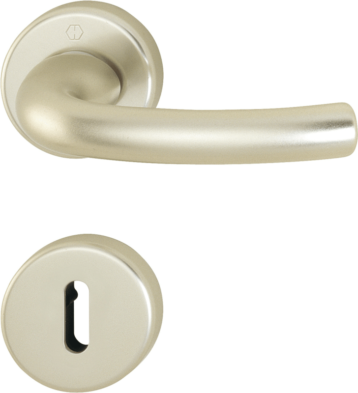 HOPPE Drückergarnitur Tokyo 1710/42KV/42KVS, Rosette, rund, Buntbart gelocht, Vierkant 8mm, DIN Links-Rechts, Türstärke 37 - 42mm, mit Stütznocken, neusilberfarben eloxiert mit Rückholfeder