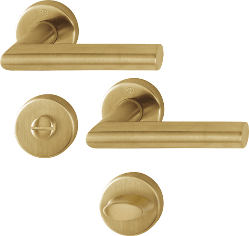 HOPPE Drückergarnitur Amsterdam E1400Z/42KV/42KVS, Rosette, rund, WC Schlitzkopf, Vierkant 8mm, Riegel-Vierkant 8mm, DIN Links-Rechts, Türstärke 37 - 42mm, mit Stütznocken, messingfarbig hell satinier