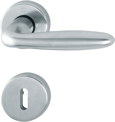 HOPPE Drückergarnitur Verona M151/42KV/42KVS, Rosette, rund, Buntbart gelocht, Vierkant 8mm, DIN Links-Rechts, Türstärke 39 - 47mm, mit Stütznocken, satiniert verchromt-Resista mit Rückholfeder