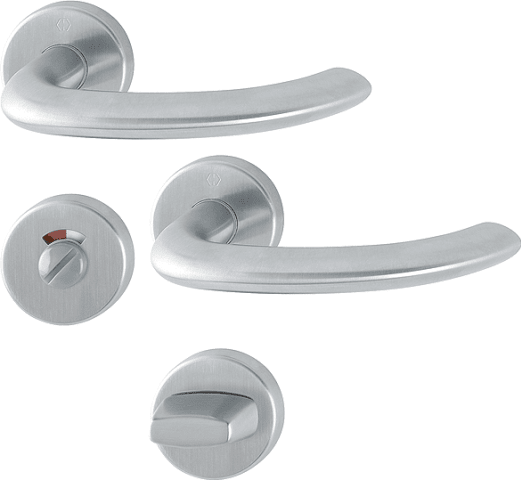 HOPPE Drückergarnitur Marseille E1138F/42/42KVS, Rosette, rund, WC Schauscheibe/Schlitzkopf, Vierkant 8mm, Riegel-Vierkant 8mm, DIN Links-Rechts, Türstärke 40 - 45mm, mit Stütznocken, edelstahl matt w