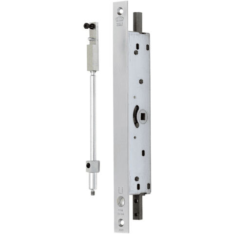 BKS Umlenkschloss B 1798; Produkttyp: Umlenkschloss; Produkttyp (Hersteller): Umlenkschloss; Einsatzbereich: für Treibriegelstange; Drückernuss: einteilig; Stulpform: Flachstulp; Material Stulp: Edelstahl; Schlosskasten: geschlossen; Schlosskastenhöhe: 210 mm; Schlosskastenstärke: 18 mm; Türart: Rohrrahmen; Türflügelanzahl: zweiflügelig; Türwerkstoff: Aluminium,Stahl; Dornmaß: 65 mm; Hinterdornmaß: 15 mm; Drückernussvierkant: 9 mm; DIN-Richtung: DIN Links-Rechts; Stulpausführung: kantig; Stulpbreite: 24 mm; Stulplänge: 295 mm; Stulpstärke: 3 mm; Farbton Stulp: edelstahl; Oberfläche Stulp: matt; Zusatzfunktion-/Ausstattung: mit Pendel-Regulierkupplung; Einbautiefe Schlosskasten: 77 mm