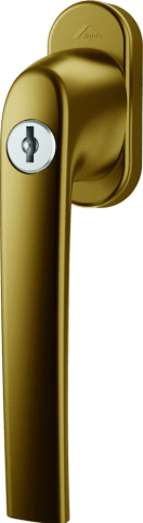 Roto Fenstergriff Roto Samba; Produkttyp: Fenstergriff; Produkttyp (Hersteller): Fenstergriff; Ausführung: abschließbar; Variante TBT-Funktion: kippen vor drehen; Rastung: 90°; Stütznocken: mit Stütznocken; Verriegelungsart: mit Drehzylinder; Material: Aluminium; Montageart: aufliegend; Befestigungsart: verdeckt verschraubt; Anwendung: innen; Drehmoment-Widerstand: 40 N·m; Anzahl Schlüssel: 1 St.; Länge: 119 mm; Befestigungsabstand: 43 mm; Form Rosette: oval; Breite Rosette: 28,6 mm; Höhe Rosette: 66 mm; Stärke Rosette: 12,7 mm; Durchmesser Stütznocken: 9,7 mm; Norm: DIN EN 13126-3; Einsatzbereich: Drehkipp; Fensterwerkstoff: Aluminium,Kunststoff,Holz; Vierkant: 7 mm; Stift vorstehend: 43 mm; Zubehör: mit Schrauben; Schraubengröße: M5x50; DIN-Richtung: DIN Links-Rechts; Farbe: braun; Farbton: bronze; Oberfläche: eloxiert; Aufdruck: mit Logo; Schließung: gleichschließend