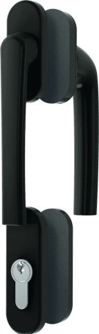 Roto Griffgarnitur Roto Samba; Ausführung: mit Rosetten,abschließbar; Material: Aluminium; Vierkant: 7 mm; Rastung: 90°; Befestigungsart: verdeckt verschraubt; Befestigungstechnik: mit Stütznocken; Lieferung: mit Vierkantstift; Einsatzbereich: Fenstertür; Basis: Griffgarnitur; DIN-Richtung: DIN Links-Rechts; Nockendurchmesser: 9,7 mm; Sockelbreite: 28,6 mm; Sockelhöhe: 68 mm; Sockelstärke: 8 mm; Befestigungsabstand: 43 mm; Oberfläche: pulverbeschichtet; Farbton: graubraun; Fensterart: Kunststofffenster,Holzfenster,Aluminiumfenster; Lochung: Profilzylinder gelocht; Außengriff/Innengriff: Außengriff fest verstiftet,außen flach,innen Standard; Funktion: Standard; Stärke Abdeckung außen: 8 mm; Stärke Abdeckung innen: 8 mm; Stift vorstehend: 127 mm; Fensterwerkstoff: Kunststoff,Holz,Aluminium; Aufdruck: mit Logo