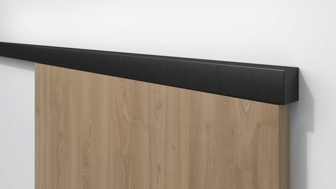 Schiebetür-Klemmbeschlag 9176 für Holztüren, für Wand- oder Deckenmontage, Laufschiene 2000 mm, inkl. Abdeckprofil, Tragkr. 60 kg, Einzugsdämpfer, 2 Laufw., 2 Endk., 2 Holz Klemmbacken, 1 Bodenf., Obe