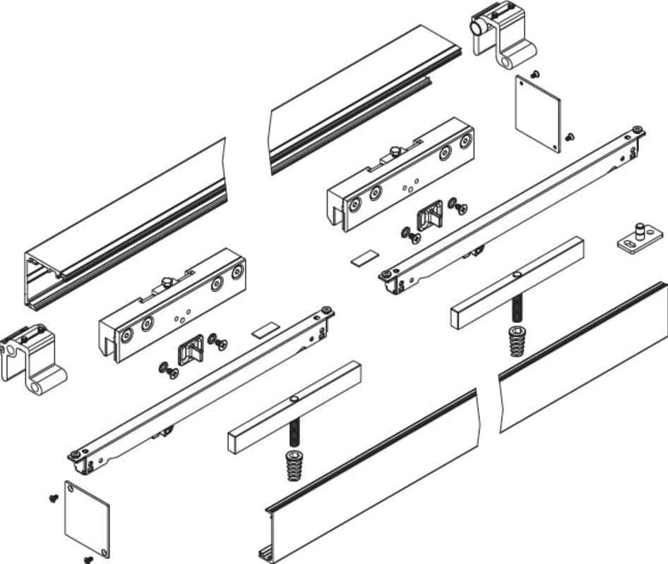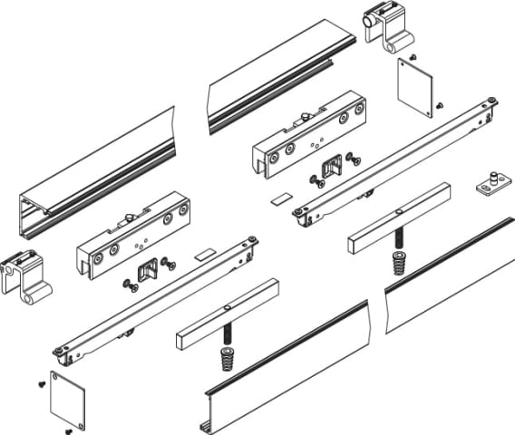 Schiebetür-Klemmbeschlag 9176 für Holztüren, für Wand- oder Deckenmontage, Laufschiene 2400 mm, inkl. Abdeckprofil, Tragkr. 80 kg, Dämpfer verst., 2 Laufw., 2 Endk., 2 Holz Klemmbacken, 1 Bodenf., Obe