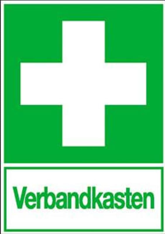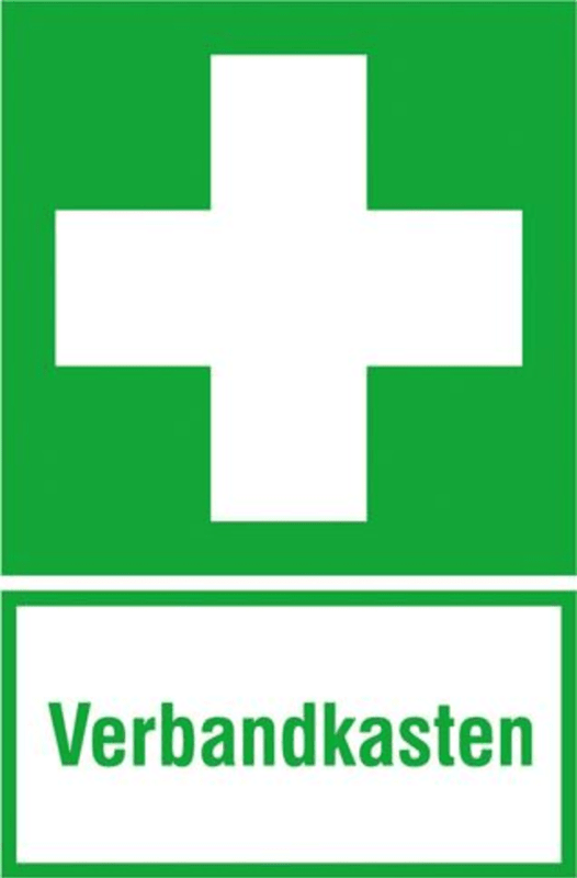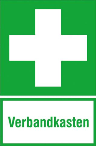 Rettungsschild, Verbandkasten • ASR A1.3 E003 + Zusatztext • DIN EN ISO 7010 E003 + Zusatztext • Langnachleuchtend, DIN 67510-4 Unterklasse C