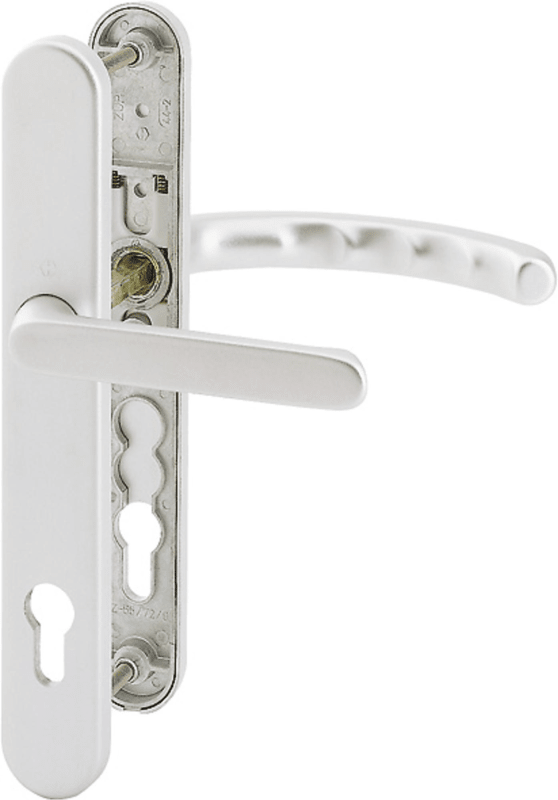 HOPPE Drückergarnitur Luxembourg 099KH/3357N/1500, Langschild, oval, Profilzylinder gelocht, Entfernung 92mm, Vierkant 8mm, DIN Links-Rechts, Türstärke 72 - 77mm, mit Stütznocken, natur matt eloxiert,