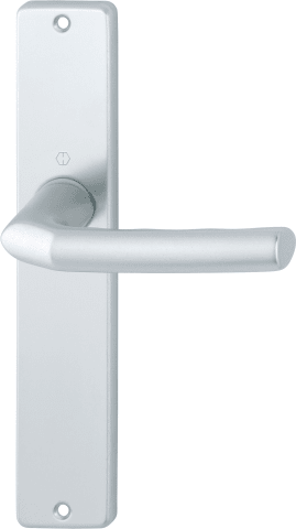 HOPPE Drückergarnitur Birmingham 1117/202SP-2, Langschild, eckig, ungelocht, Vierkant 8mm, DIN Links-Rechts, Türstärke 37 - 47mm, mit Stütznocken, naturfarben eloxiert, wartungsfreies Gleitlager