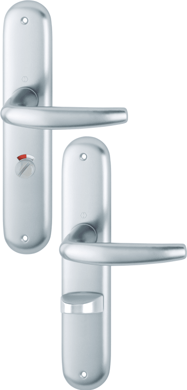 HOPPE Drückergarnitur Atlanta 1530/273P, Langschild, oval, WC Schauscheibe/Schlitzkopf, Entfernung 63mm, Vierkant 8mm, Riegel-Vierkant 8mm, DIN Links-Rechts, Türstärke 37 - 42mm, ohne Stütznocken, nat
