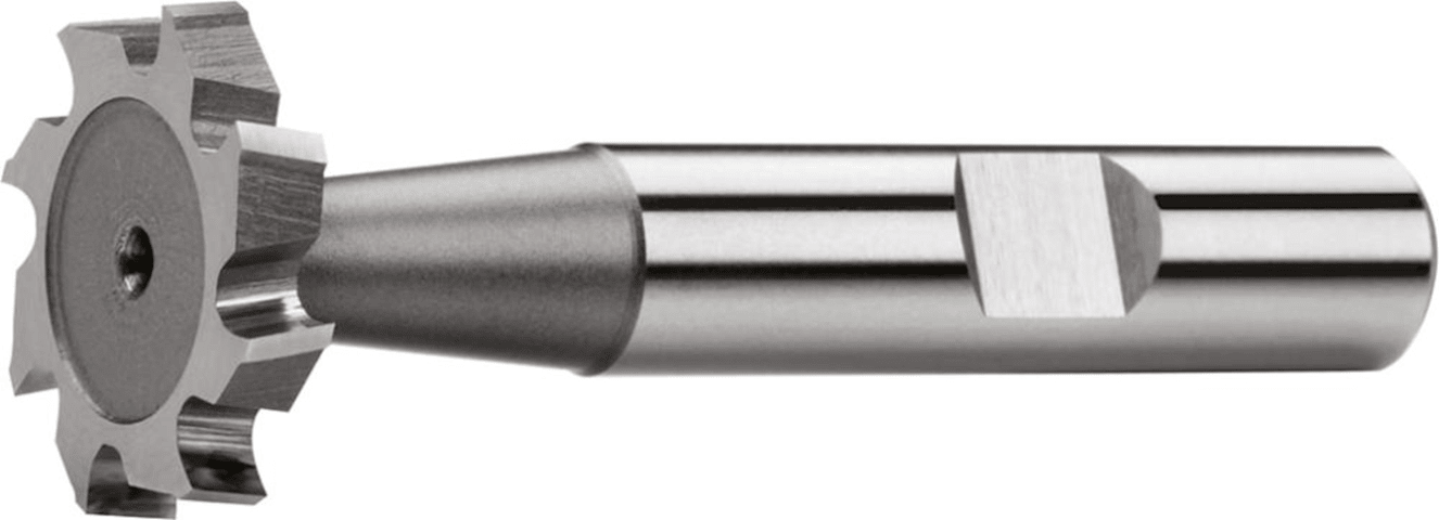 Schlitzfräse • Ausführung: kur • HSS-Co • DIN 850- • DIN 1835- • Drallwinkel 10? • Spanwinkel 10? • Zum Fräsen von Scheibenfedernuten oder von Schlitze • Kein Verklemmen durch Freischliff des Fräser