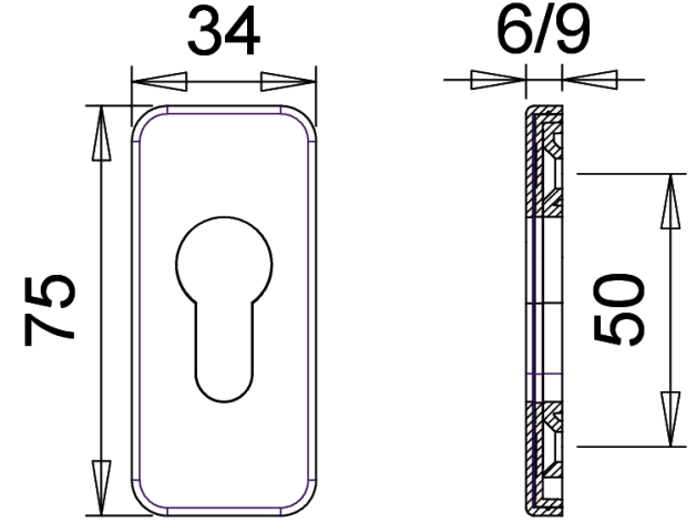 EDI, Profiltür-Schlüsselrosette, Lochung: Profilzylinder gelocht, Befestigungsart: verdeckt verschraubt, Modell: Keto, Modellnummer: 8146, Material: Aluminium, Farbton: dunkelbraun, Oberfläche: lackie